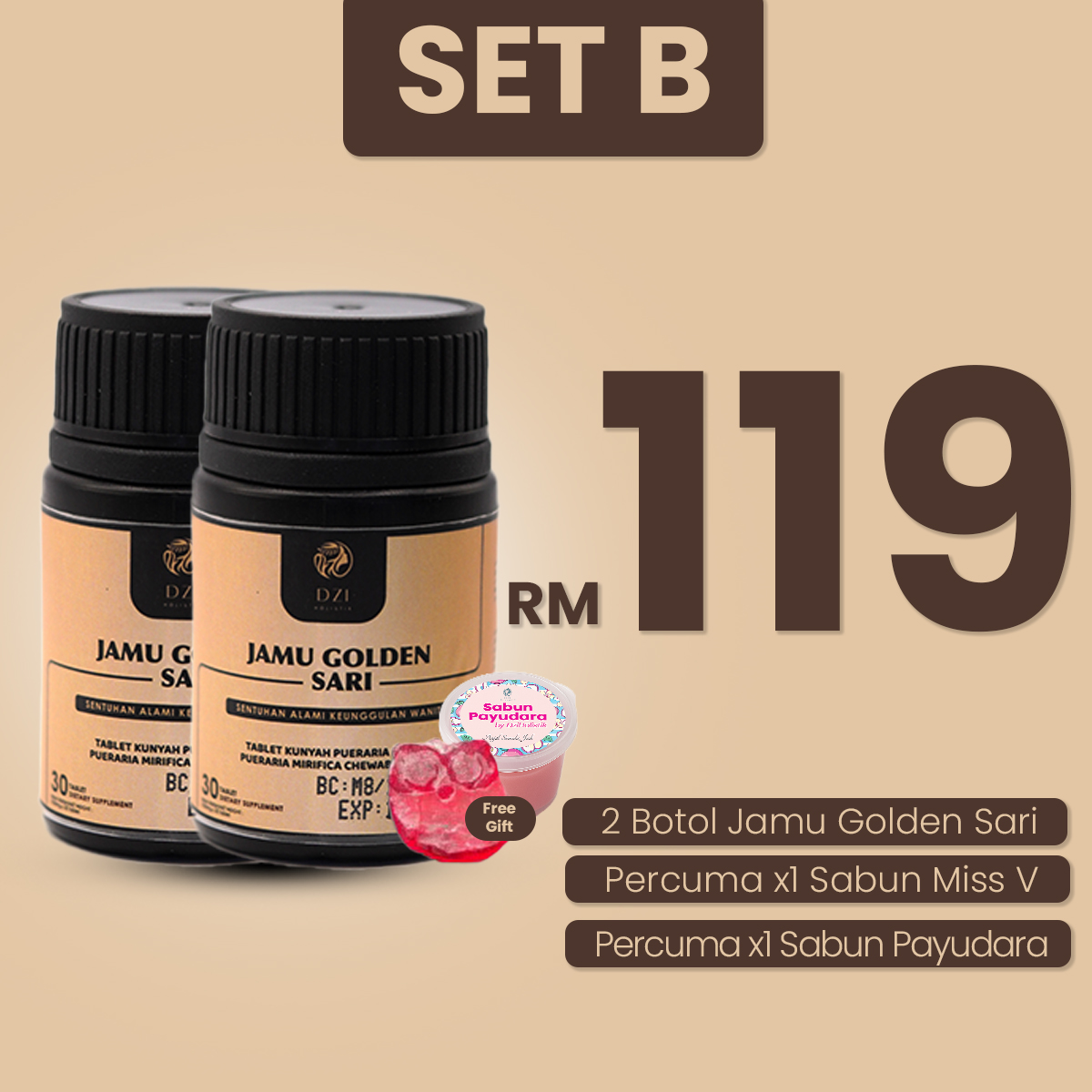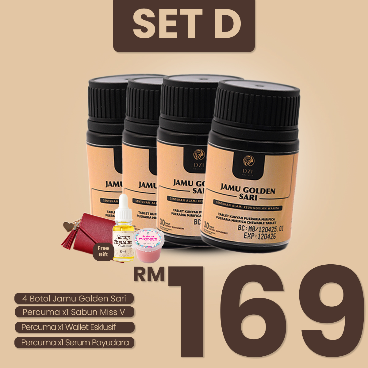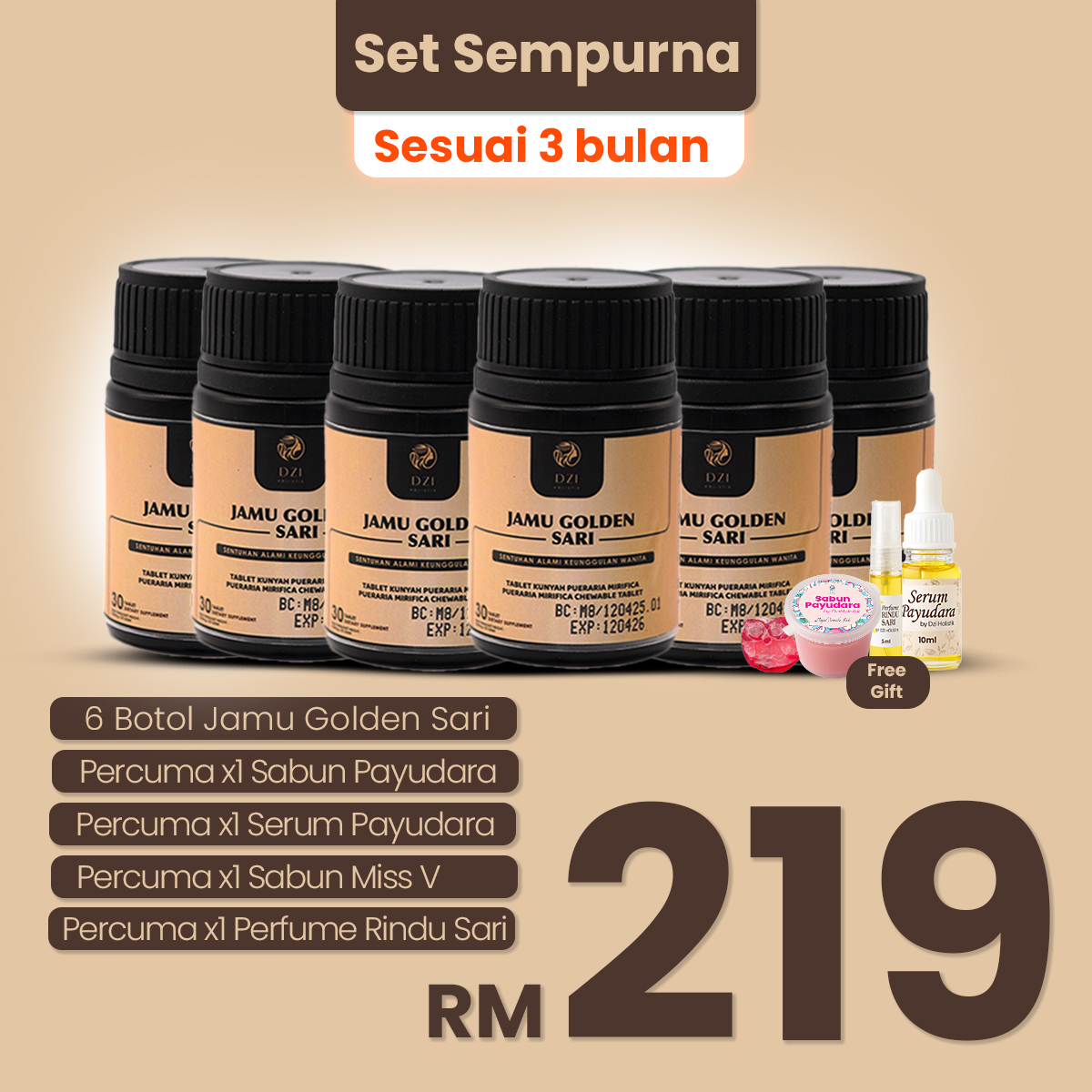 Golden Sari bantu stabilkan hormon, kurangkan simptom menopause, tegangkan semula payudara & ketatkan kawasan intim. Sesuai untuk wanita lepas bersalin, menopause atau yang alami perubahan bentuk badan.