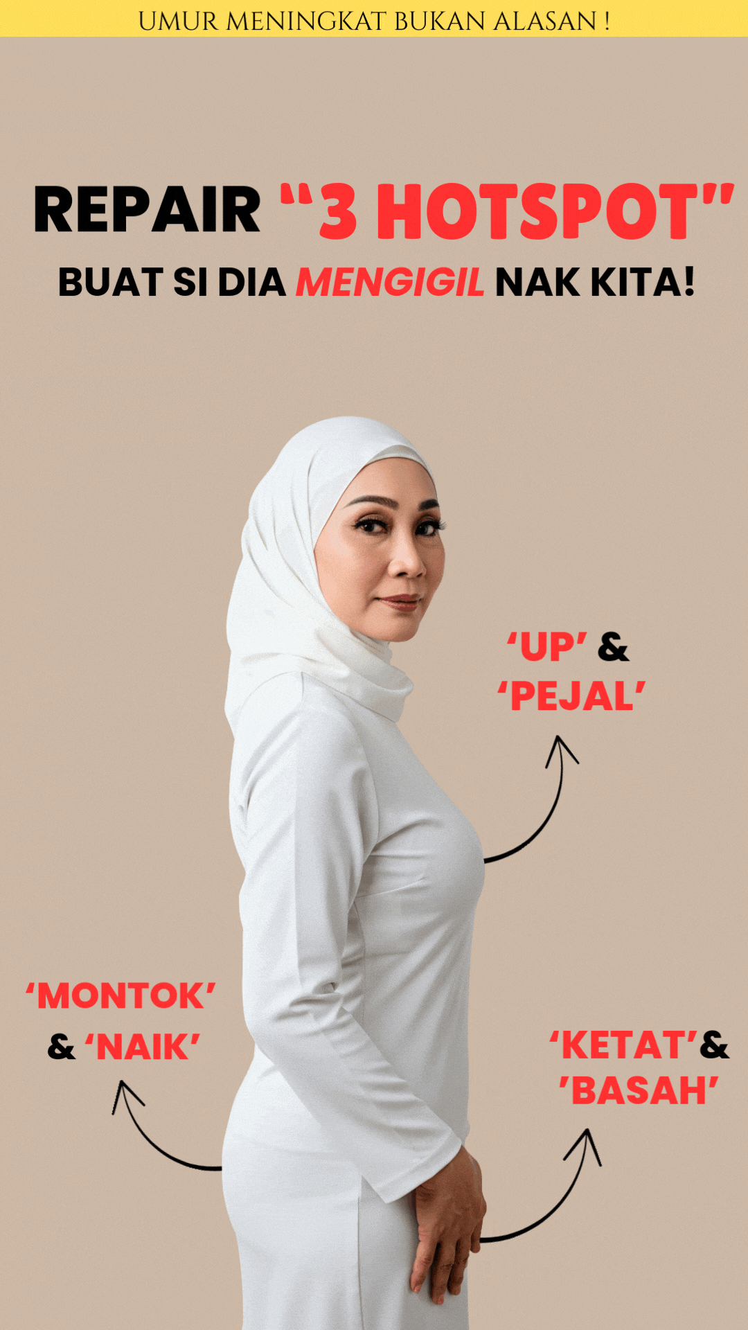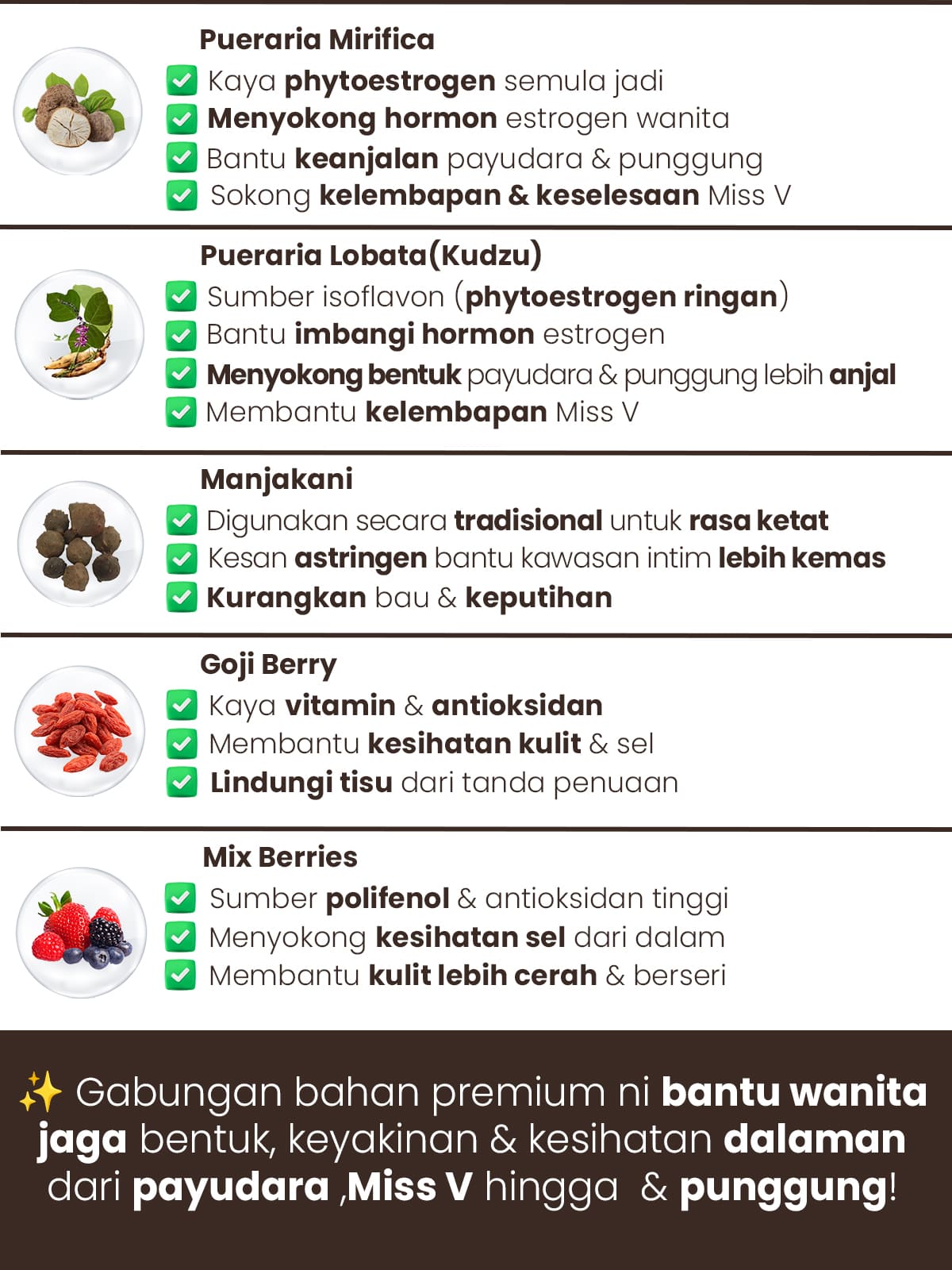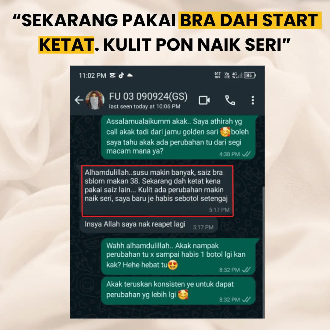Golden Sari bantu stabilkan hormon, kurangkan simptom menopause, tegangkan semula payudara & ketatkan kawasan intim. Sesuai untuk wanita lepas bersalin, menopause atau yang alami perubahan bentuk badan.